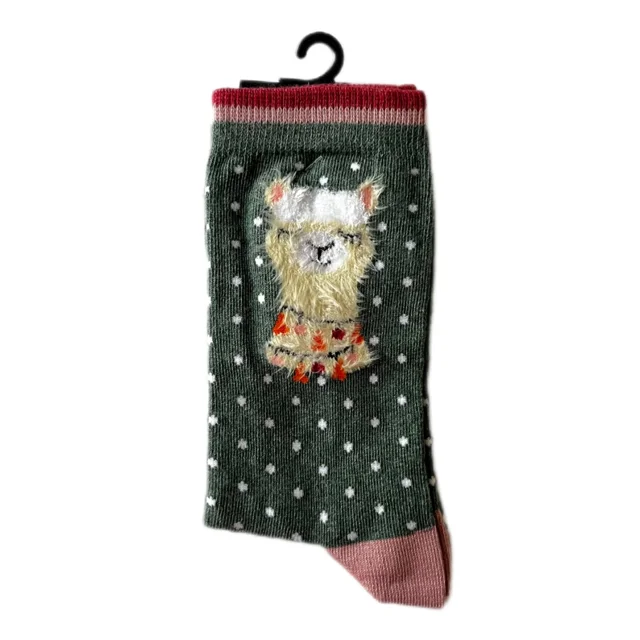جوراب زنانه ساق بلند طرح لاما پشمالو